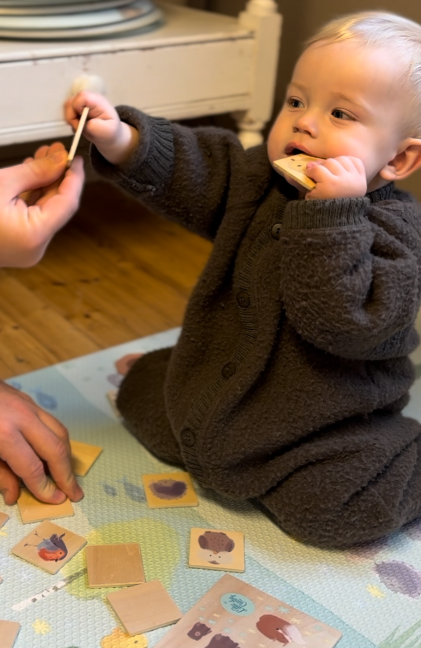 Ved å kombinere observasjon, hukommelse og motoriske ferdigheter støtter spillet barnets naturlige utvikling. Inspirert av Montessori-metodikk oppmuntrer det til selvstendig tenkning og lar barnet lære i sitt eget tempo.